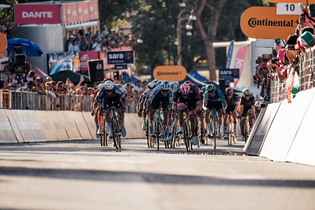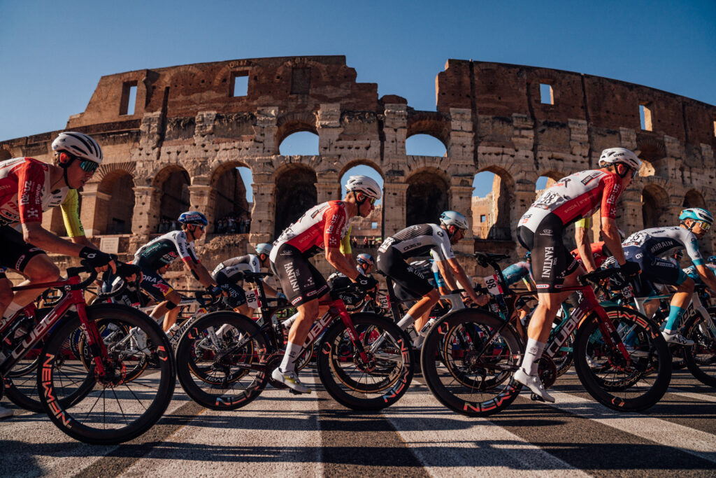Li abbiamo visti sfrecciare lungo tutto lo Stivale, in volate mozzafiato e su pendenze impossibili, abbiamo sentito la loro potenza, l’impegno e la fatica, e ci siamo emozionati insieme a loro dopo una vittoria tanto desiderata, che a volte è arrivata, a volte è sfumata per un soffio. E anche nei momenti più duri, c’era tutto l’amore e il supporto della gente, migliaia di tifosi che si sono riversati sulle strade, portando con sé quell’energia che ha spinto i corridori sui tornanti più insidiosi, con quel boato che li ha accolti fino alla fine, e che rievoca nella nostra mente il loro arrivo ad ogni traguardo. Sì perché quando c’è il Giro d’Italia, vogliamo esserci, ci basta anche un solo passaggio davanti ai nostri occhi per vivere tutta la passione di uomini che sfidano i propri limiti ad ogni pedalata. Ma com’è la vita del ciclista “Behind the scenes”? E quanto è affascinante conoscere ogni aspetto della loro giornata, dalla loro preparazione fisica e mentale, alla nutrizione quotidiana, ad aneddoti e curiosità prima di montare in sella? Noi abbiamo affiancato gli 8 eroi e tutto lo staff della Q36.5 Pro Cycling Team, la squadra svizzera Pro maschile diretta da Douglas Ryder, che porta il nome dell’azienda italiana Q36.5, leader nell’abbigliamento per il ciclismo. Lo abbiamo fatto in occasione dell’ultima tappa, quella di Roma, la più celebrativa, la conclusione di un viaggio indimenticabile, il primo Giro d’Italia in assoluto del team capitanato dal britannico Tom Pidcock, al suo debutto nella Corsa Rosa, con una rappresentanza italiana d’eccezione per lo sprint Matteo Moschetti, il velocista milanese alla sua terza esperienza al Giro. Prima di farvi leggere cosa ci hanno raccontato, andiamo “Behind the scenes” proprio insieme a loro.