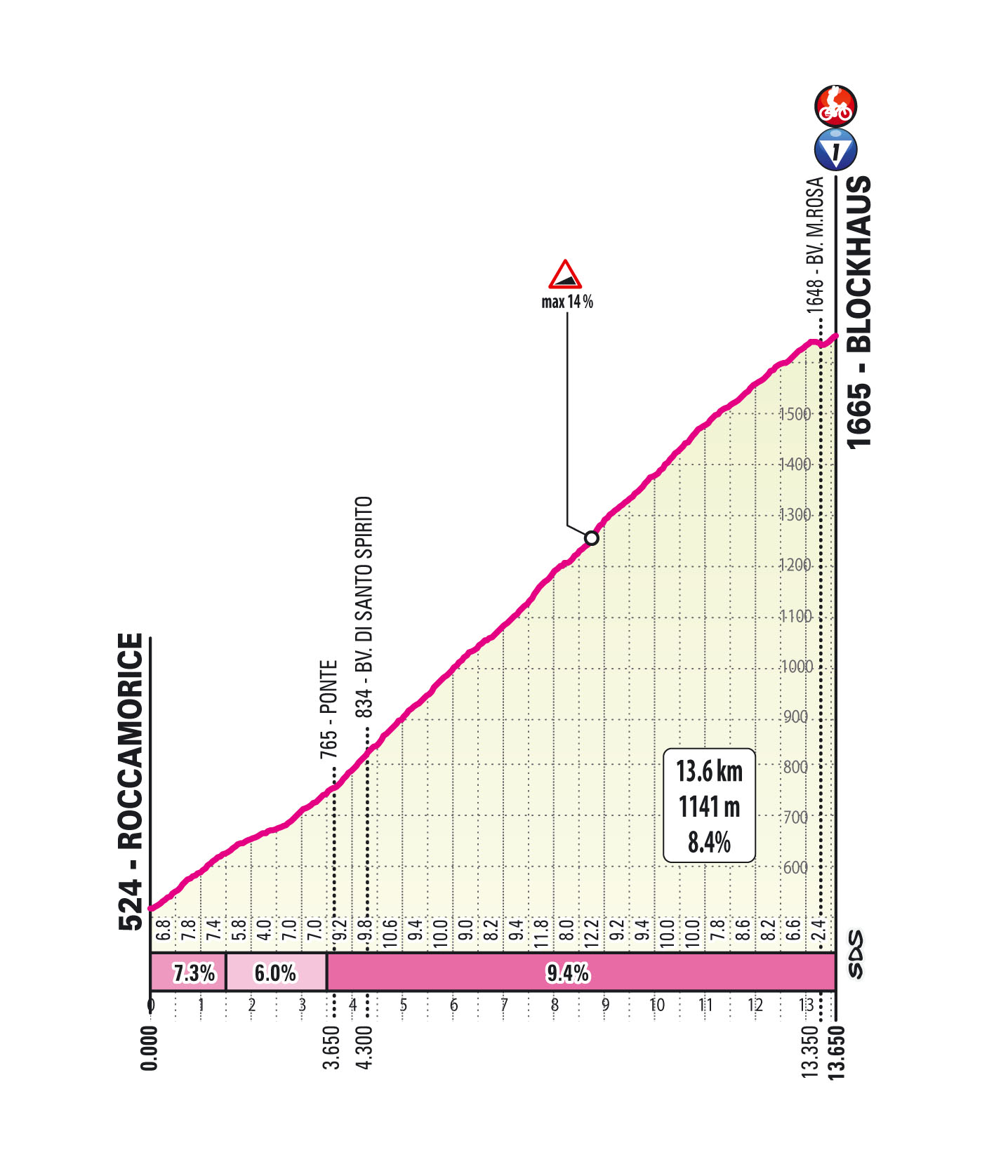 Today it is one of the most iconic climbs of the Giro d’Italia: 13.6 km with an average 8.4% gradient, tough and highly selective.