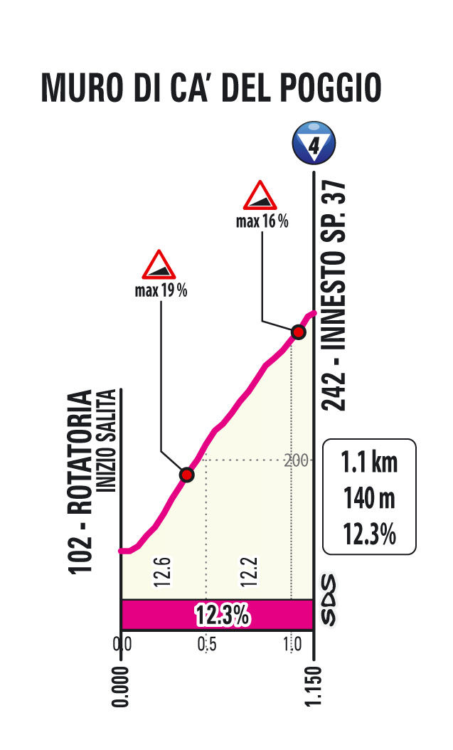 In San Pietro di Feletto, in the province of Treviso, it is short and brutal: 1,100 metres at 12.3%, with gradients up to 19% that offer no respite.
