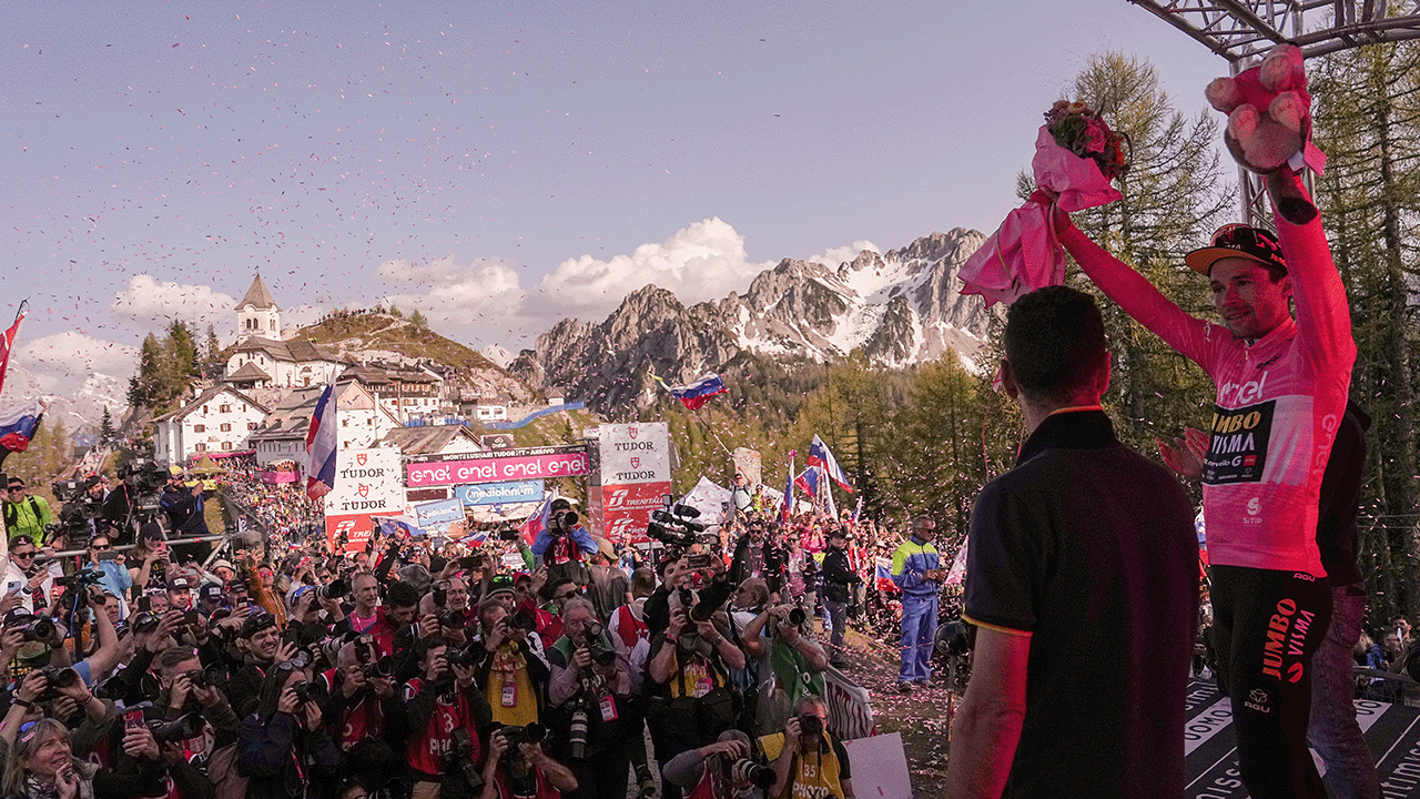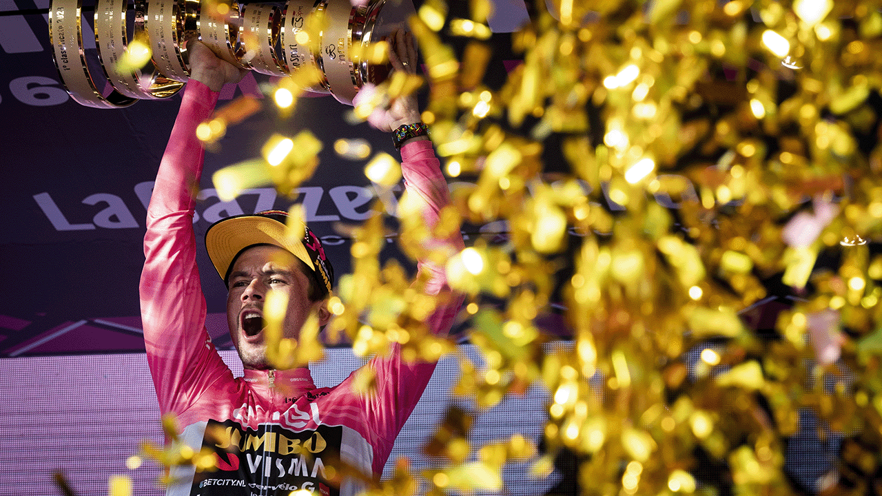 It’s the 27th of May 2023. The Giro d’Italia has unfolded as a very tight duel between Geraint Thomas, who has worn the Maglia Rosa up to this penultimate stage, and Primoz Roglic. The Jumbo‑Visma star rides today in the region of Friuli, a stone’s throw from the Slovenian border, which draws countless fans from his country to the grueling and decisive time‑trial climb up Monte Lussari (almost 8 km at an 11 % gradient).