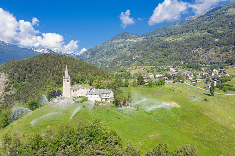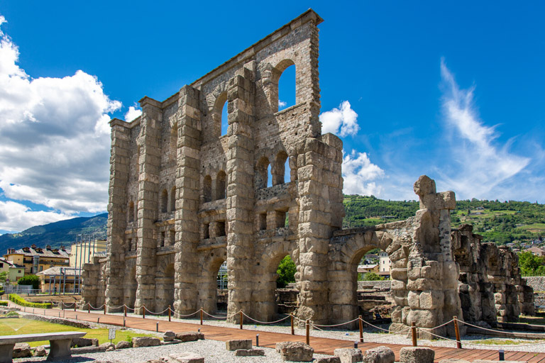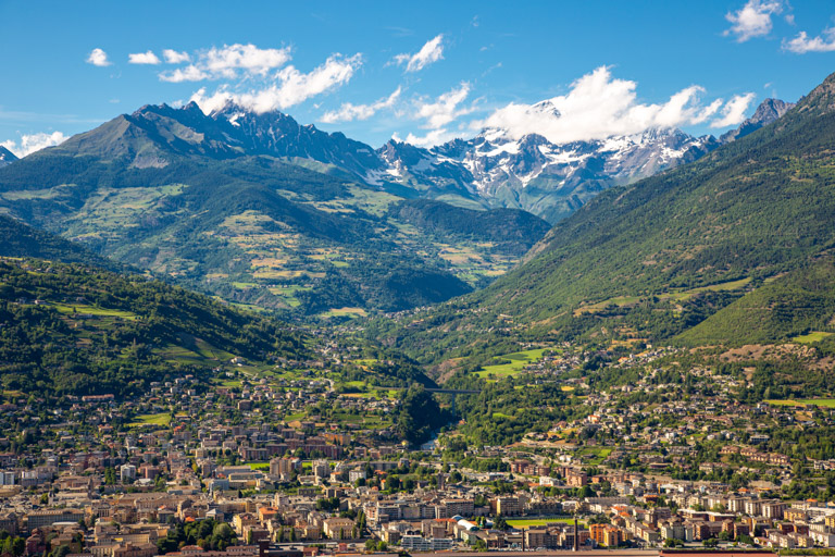 Completing the picture is the proximity to Aosta, a Roman-founded city visible from above with its major monuments, set within a landscape that seamlessly blends ancient history with the dramatic beauty of the Alps.