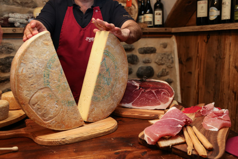 The culinary tradition of Pila and the Gressan area reflects the richness of Valdostan cuisine, deeply rooted in the Alpine environment. Among its most iconic products is Fontina DOP, the region’s signature cheese, alongside cured meats such as Lardo d’Arnad DOP, mocetta, and Jambon de Bosses DOP. Local produce also includes Gressan apples, grown in a particularly favourable microclimate. The cuisine features hearty, comforting dishes such as fonduta alla valdostana, polenta concia, carbonada, and cotoletta alla valdostana, as well as traditional recipes like seupa à la vapelenentse, an authentic expression of mountain food culture.