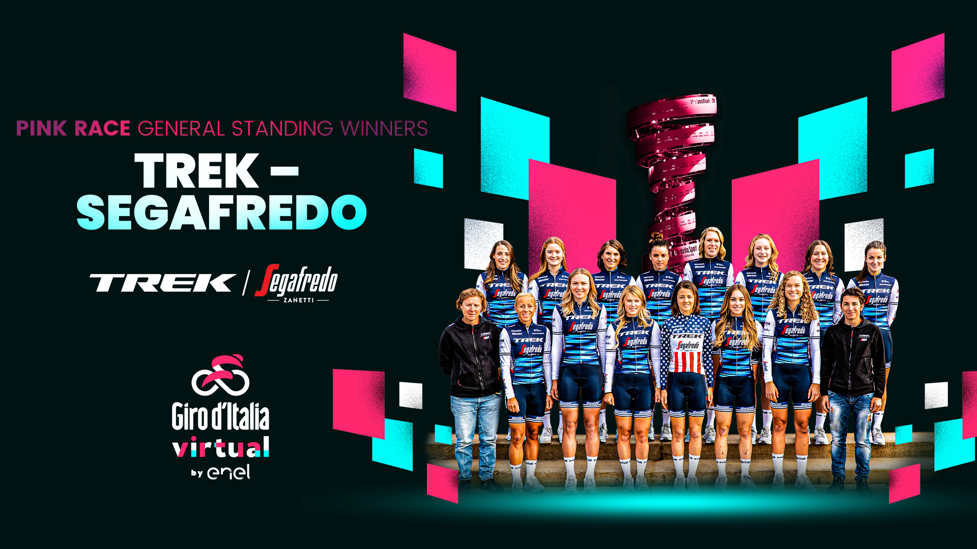 El Giro d’Italia Virtual by Enel organizado por RCS Sport junto con Garmin Edge y Tacx vio a más de 10,000 personas conectadas para cada etapa que pedalearon virtualmente en el extremo de siete fracciones de la Corsa Rosa: desde la llegada de Tortoreto hasta el camino difícil della Nove Colli, el final de San Daniele del Friuli como finisseur, las llegadas en cuesta arriba de Madonna di Campiglio y Sestriere, con unos 1000 metros de altitud en los últimos 30 km y para terminar los 15,7 km de la contrarreloj de Milán (etapa completo). Los 2.5 millones de vistas de video en las plataformas oficiales y las 500 historias publicadas en el perfil de Instagram también dan testimonio del interés suscitado por este nuevo evento. Una muestra de la Corsa Rosa que será, pero también una verdadera competencia. Entre los profesionales, el Astana Pro Team ganó la primera edición del Giro d’Italia Virtual usando la Maglia Rosa de la primera etapa. Un dominio obtenido gracias a las pruebas de corredores como Jakob Fuglsang, Alexey Lutsenko, Davide Martinelli, Ion y Gorza Izaguirre. Elia Viviani, Domenico Pozzovivo, Robert Gesink, Sonny Colbrelli, Steven Kruijswijk, Grega Bole, Enrico Battaglin, Omar Fraile, Alberto Bettiol, Fausto Masnada e Laurens De Plus entre los grandes nombres del mundo del pedal que prácticamente han competido a lo largo de Corsa Rosa.