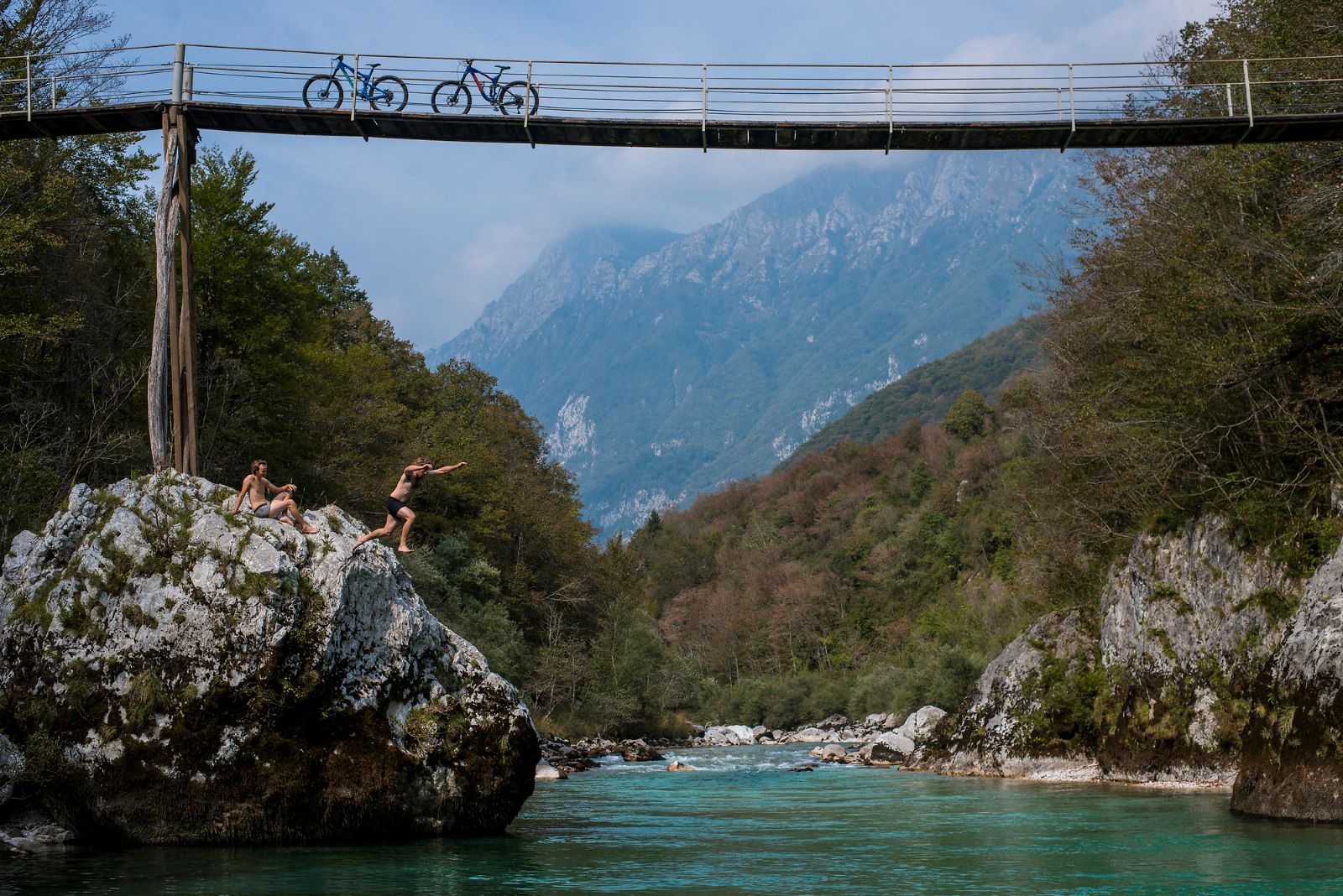 Pedalare lungo le sponde del fiume verde-azzurro in Slovenia. Sulla scia dei campioni del Giro.
