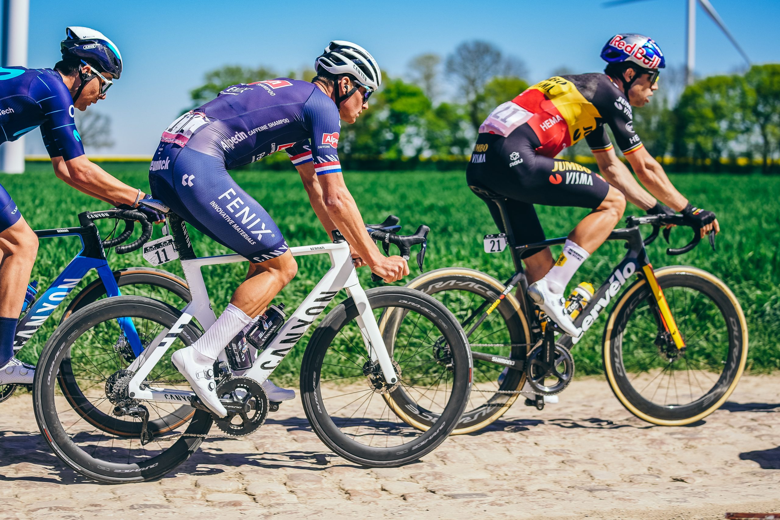 La rivoluzione Shimano si può sintetizzare così: pensiero e azione, uomo e bicicletta, sono quasi una cosa sola. Merito della piattaforma Di2, che garantisce una connessione fulminea tra comando e cambio, il più veloce di sempre prodotto dall’azienda, con una trasmissione a 12 velocità di tipo semi-wireless: i comandi che trasmettono l’impulso al cambio sono privi di cablaggio, mentre cambio e deragliatori sono cablati e dotati di una batteria interna. Ma non si perde nulla in affidabilità, e tanto meno in efficienza. I numeri non mentono: meno 58 per cento del tempo di funzionamento del deragliatore posteriore e del 48 per cento di quello anteriore. E non finisce qui. Se la cambiata risulta più fluida, senza interruzioni, è anche grazie alla nuova cassetta DURA-ACE HYPERGLIDE+, in cui sono stati rivisti i rapporti tra i pignoni 6, 7 e 8, per far sì che la catena si incastri nel modo migliore. Vale quando si sale o si scende nei rapporti. L’effetto? Cambi e non ti accorgi di averlo fatto. Perché intanto tu spingi sui pedali, guadagni metri, ti avvicini al traguardo.