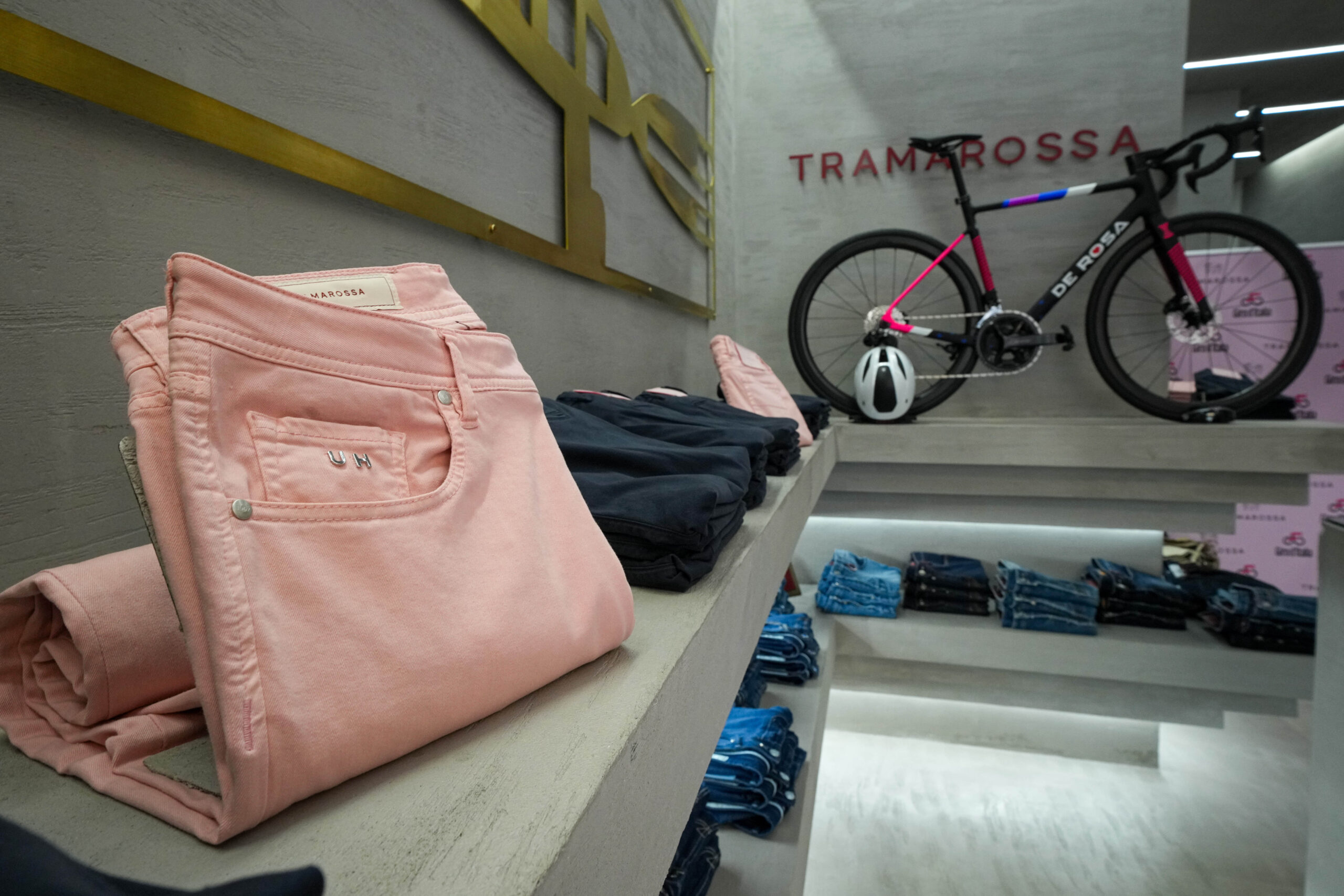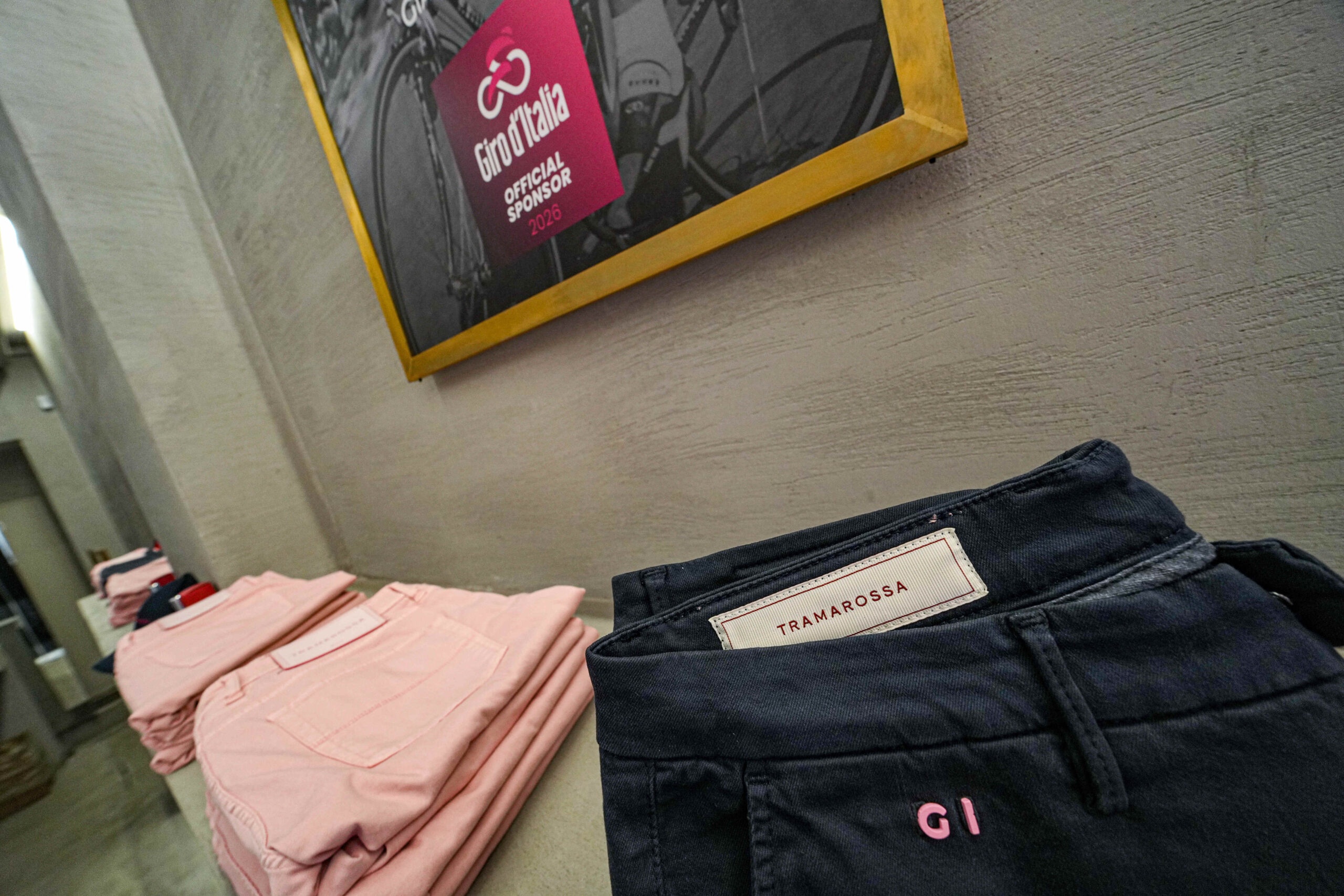 Per celebrare questa partnership, Tramarossa ha realizzato una capsule collection esclusiva, ispirata al simbolo per eccellenza del Giro: la maglia rosa. Un richiamo cromatico raffinato e identitario attraversa ogni dettaglio del capo: dall’etichetta posteriore alle fodere interne, fino al bottone impreziosito da smalto rosa e alle iconiche iniziali del brand, reinterpretate per l’occasione in una nuova, sofisticata tonalità.