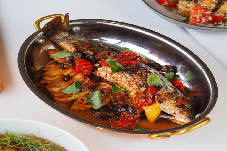 1. Zuppa di pesce Classica del Mar Nero di Sozopol, con pesce serra, cernia e rombo in brodo di cipolle, con un ripieno cremoso di yogurt e uova, limone ed erbe aromatiche: un autentico sapore della costa bulgara del Mar Nero.