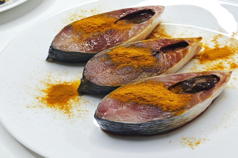 2. Pesce marinato di Sozopol, immerso in aceto, spezie e olio, servito freddo su pane tostato imburrato con cipolla rossa: un aroma intenso e un autentico sapore del Mar Nero.