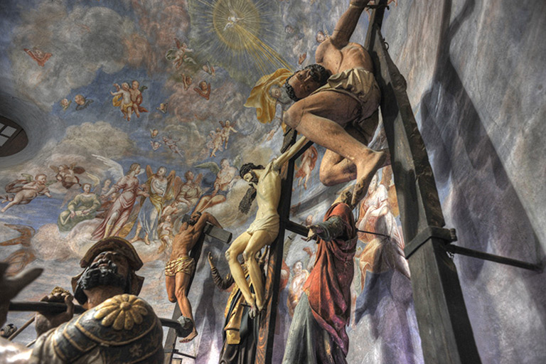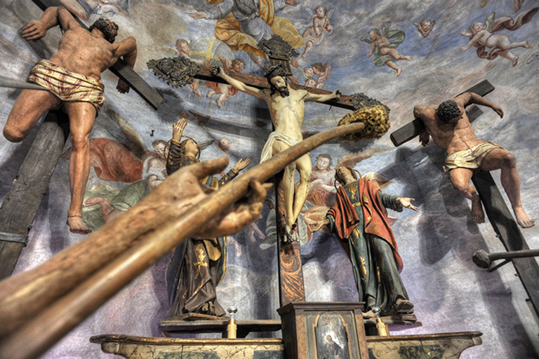 Tra gli edifici religiosi si distinguono la Basilica di Santa Maria Maddalena, nota per il complesso scultoreo del Calvario, e la Chiesa Collegiata di Santa Maria Assunta, che unisce elementi medievali e barocchi. Di grande valore storico è anche la Pieve di Santa Maria, legata alle origini più antiche dell’insediamento.