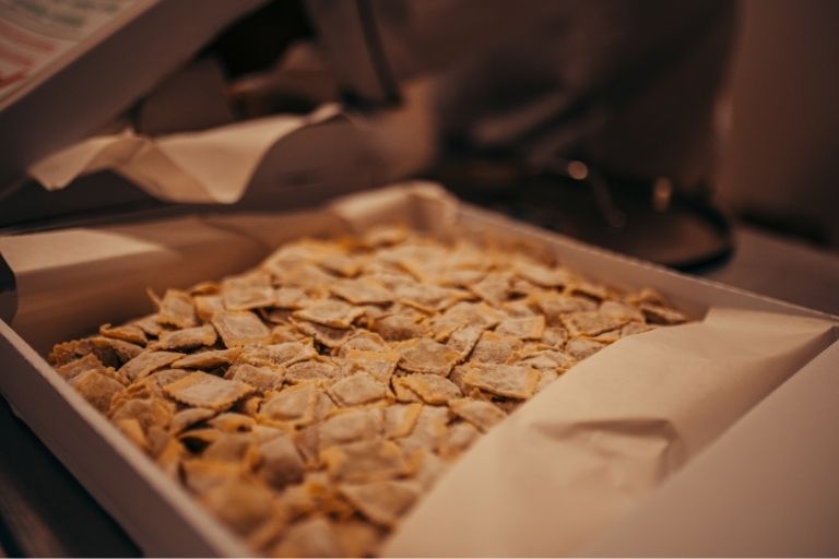 La tradizione gastronomica di Novi Ligure riflette l’incontro tra cultura piemontese e influenze liguri. Tra i piatti simbolo spiccano gli agnolotti novesi, ravioli dal ripieno di carni e verdure, serviti con sugo d’arrosto o al vino. Tipici sono anche i corzetti, pasta decorata con stampi in legno, e preparazioni della tradizione come focaccia e farinata. In ambito dolciario si distinguono i baci di dama, riconosciuti con De.Co., e i canestrelli, dalla consistenza friabile. Novi è inoltre conosciuta come “città del cioccolato”, grazie alla presenza di storiche industrie dolciarie che hanno reso celebri prodotti come tavolette e gianduiotti. Tra i prodotti locali si segnala anche il cece della Merella, legato alla tradizione agricola del territorio.