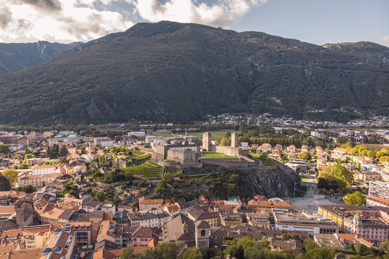 Capoluogo del Canton Ticino, Bellinzona occupa una posizione strategica all’ingresso delle principali vie alpine che collegano il Nord e il Sud dell’Europa, in particolare i valichi del San Gottardo, del San Bernardino e del Lucomagno. La città è celebre per il suo eccezionale sistema difensivo medievale, composto dai castelli di Castelgrande, Montebello e Sasso Corbaro, riconosciuti patrimonio mondiale UNESCO. Il centro storico conserva un impianto compatto, con piazze e edifici civili che riflettono il ruolo amministrativo della città.